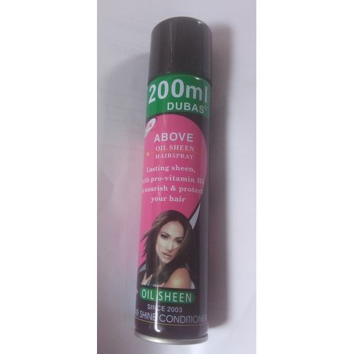 This Above oil sheen hair spray 200ml has a natural oil which nourish your hair deep within and promotes growth. It is ideal for all hair texture and hair styles. It gives a maximum shine to the hair. It doesn’t weigh down hair rather it keeps the hair healthy and feeling fresh. It is great on natural and relaxed hair as it makes the hair sticks together giving it an amazing shine. It makes a great daily moisturizer. It finishes off your style without weighing your hair down. It promotes smoother hair, which help your comb glides through tangles. It prevents dryness and flakiness. It is quick and easy to use. It gives a long-lasting shine. It can be used on wet hair but is most often used on dry hair. It leaves your hair style standing out and making you feel confident. It makes your hair healthy by nourishing it with vitamin. It gives superior shine. Contains no drying alcohol.