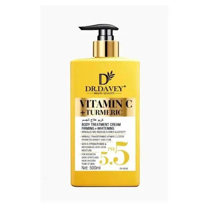 Dr Davey Vitamin C + Turmeric ph 5.5 Face Lotion 500ml firms the skin, reduces wrinkles and improves skin elasticity, stregthens the skin barrier, replemishes the skin and moisturizes, Brightens the skin, lightens dark spots, evens the skin tone. This serum is suitable for hyperpigmented skin, combats skin dullness, lightens sun spots, fades dark spots, It si anti-aging that slows down aging, Brightens, Hydrates, Smooths, reduces wrinkles and fine lines.